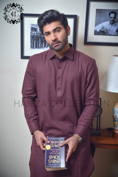 Elevate your traditional wardrobe with the Hamza Collection Deep Plum