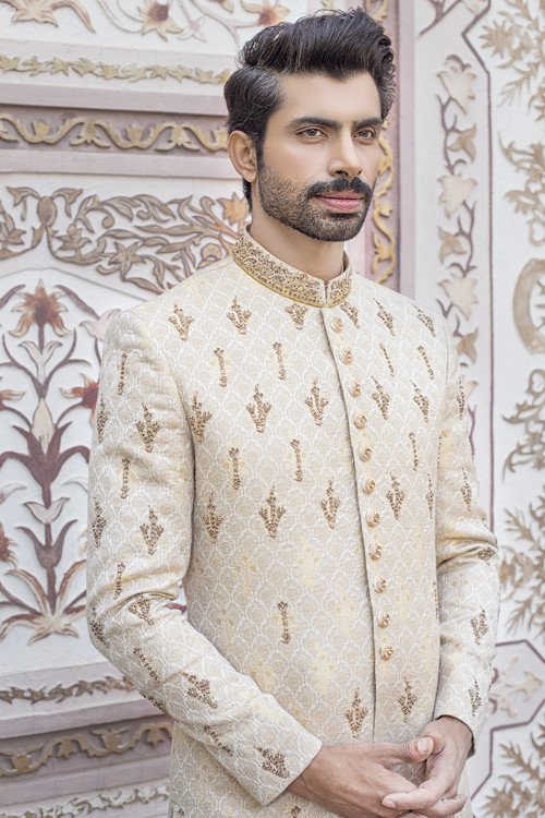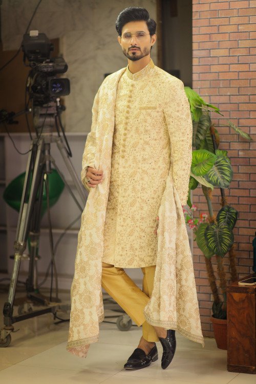 Grand Imperial Cream Sherwani with High-Definition Embroidery